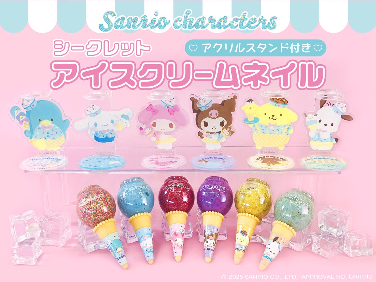 化粧品、化粧雑貨、服飾雑貨及びキャラクター雑貨等の企画・製造・販売、コンタクトレンズの企画・販売を行う粧美堂株式会社(本社:東京都港区、代表取締役社長:寺田正秀、以下 粧美堂)は、アイスクリームをモチーフにした、株式会社サンリオのキャラクターデザインのコスメ「シークレットアイスクリームネイル」を、2025年7月7日(月)より発売しました。