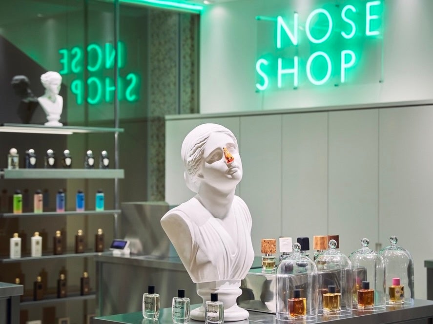 かつて“香水砂漠”と呼ばれた日本に、先陣を切って新しい香りの風を吹き込んだNOSE SHOP(ノーズショップ)。日本初のニッチフレグランス専門店として、2017年8月にスタート。大きな鼻のオブジェや、鼻を色とりどりに塗られた石膏像を目印に、現在、東京、大阪、名古屋など、主要都市を中心に13店舗を展開しています。高級ブランドのイメージや、専門知識が必要というイメージを払拭し、香水初心者から愛好家まで、誰もが自由で気軽に楽しめる空間を提供。世界中の新進気鋭なフレグランスブランドを、独自の視点でセレクトし、最上級の香りと共に暮らす喜びや楽しさを届けることを目指しています。名物企画として、ミニ香水がランダムに当たるコンテンツ「香水ガチャ®︎」を展開。その他、デイリーフレグランスブランド「KO-GU(コーグ)」のプロデュースも手掛けるなど、香りのイベント、香りのメディアとしての情報発信やリアルなワークショップなどを開催し、常に新しい香りの体験を提供しています。