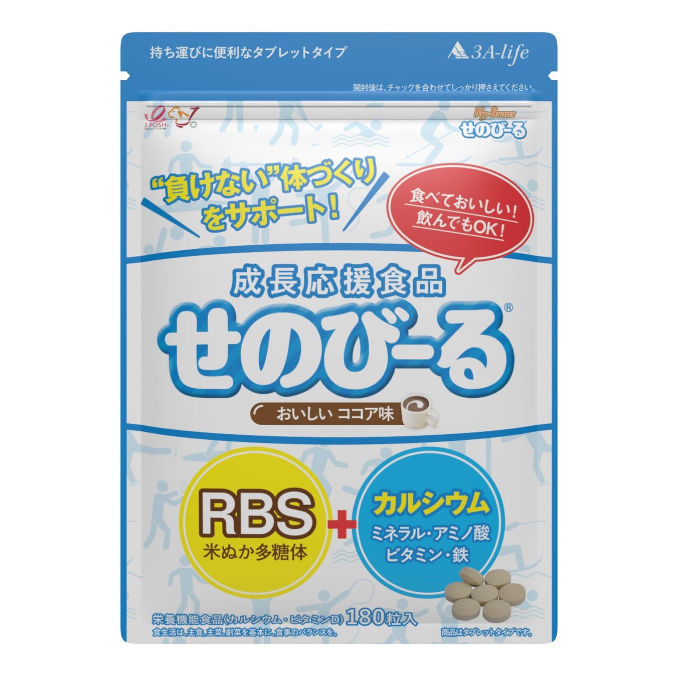 カルシウムや鉄分など4種類のミネラルをはじめ、ビタミンDなどの7種類のビタミン、RBS米ぬか多糖体をバランスよく含んだ「成長応援食品」です。