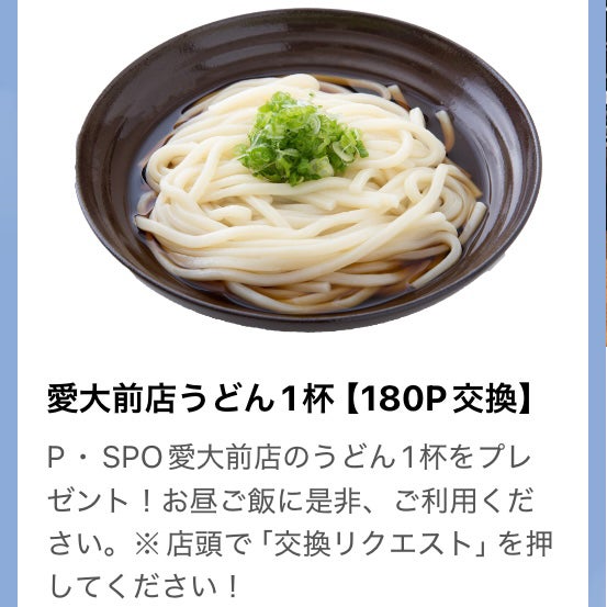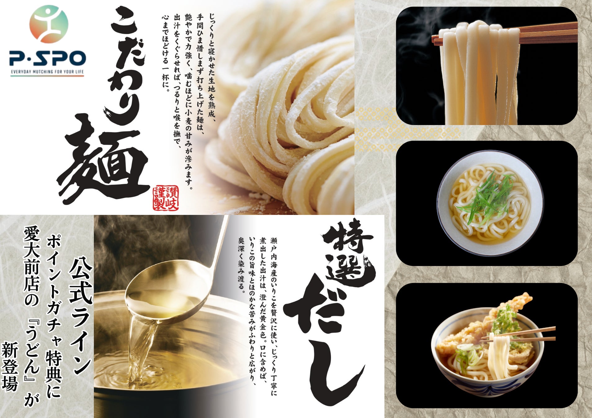 – P・SPO公式LINEのポイントガチャ特典に愛大前店の『うどん』が新しく追加 –
