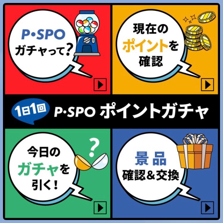 LINE上で手軽にお得な情報をGETしたり、ポイントガチャを引いて景品と交換できる、P・SPO会員様限定のお得なサービスとなっております。