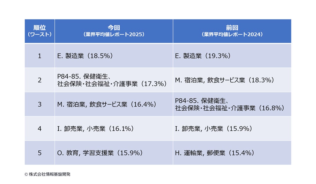 株式会社情報基盤開発は、2024年中に「ソシキスイッチ ストレスチェック(旧:AltPaperストレスチェック)」をご利用いただいたお客様からデータをご提供いただき※1、「高ストレス者」※2の割合・「総合健康リスク」※3・「各種ストレス尺度」について業種別に平均値を算出した「ストレスチェック業界平均値レポート2025」を公開いたしました。