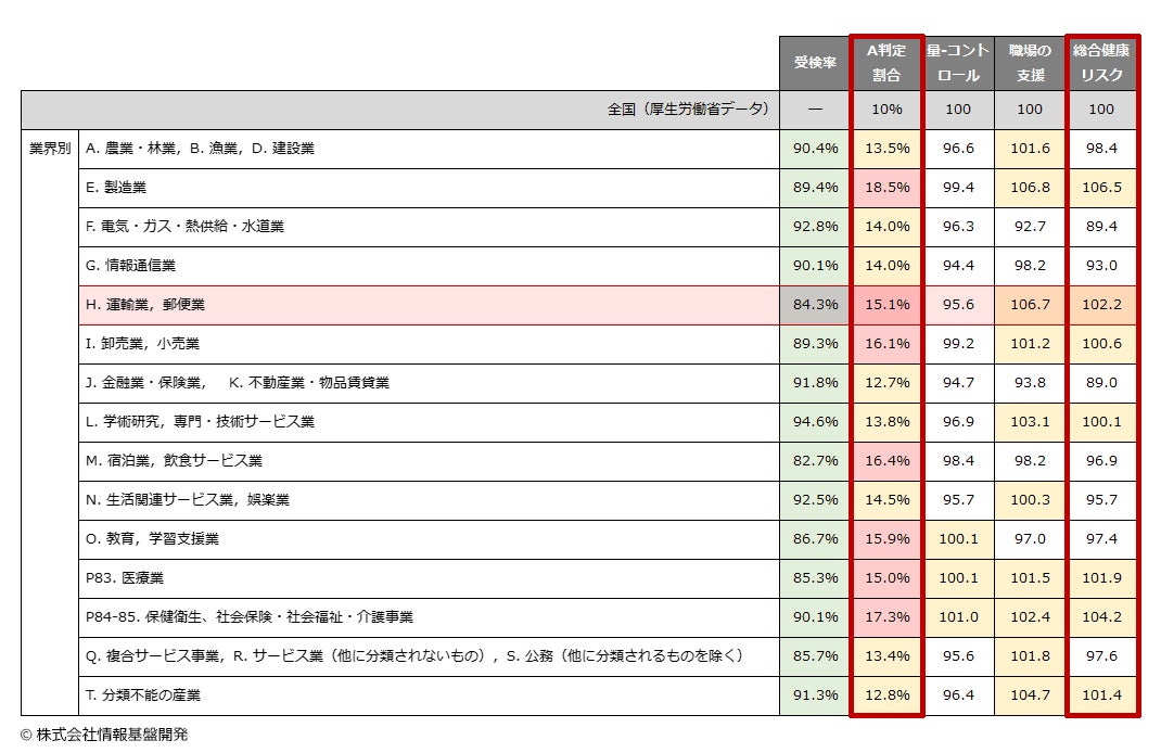 「運輸業, 郵便業」のストレスチェック実施結果の特徴は?