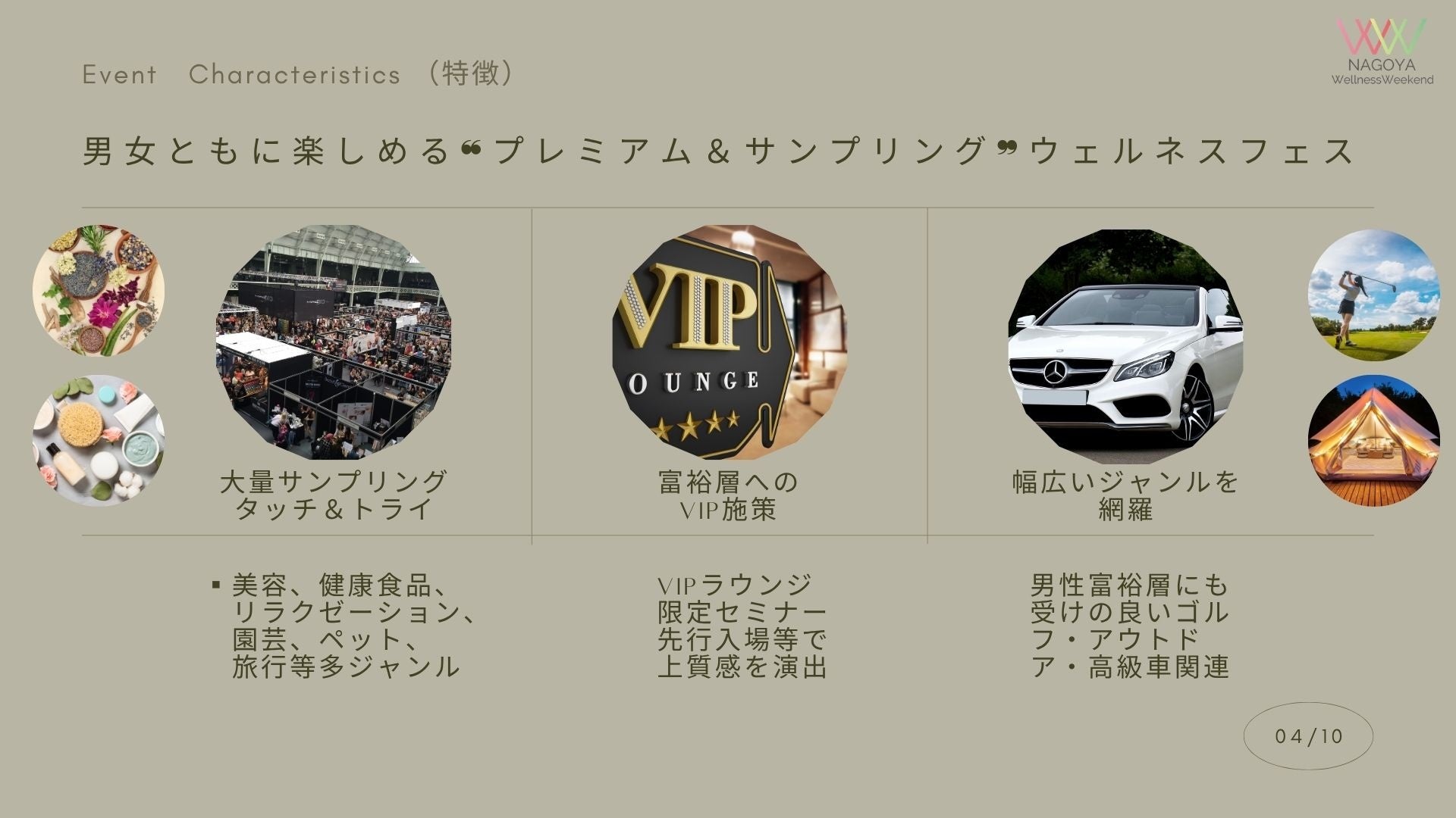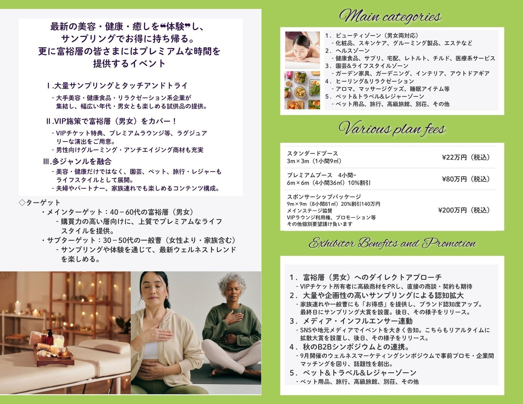 ~名古屋発、健康・未病・美容・癒し・リラクゼーション、旅行、レジャー、ペット関連等ウェルネスな体験、サンプリングがそろう富裕層向け展示会~