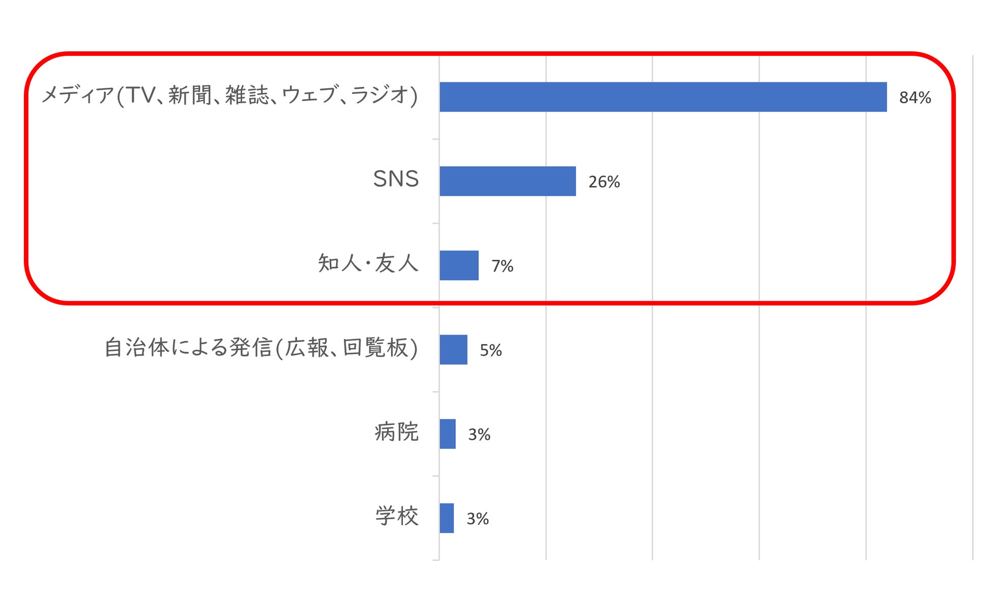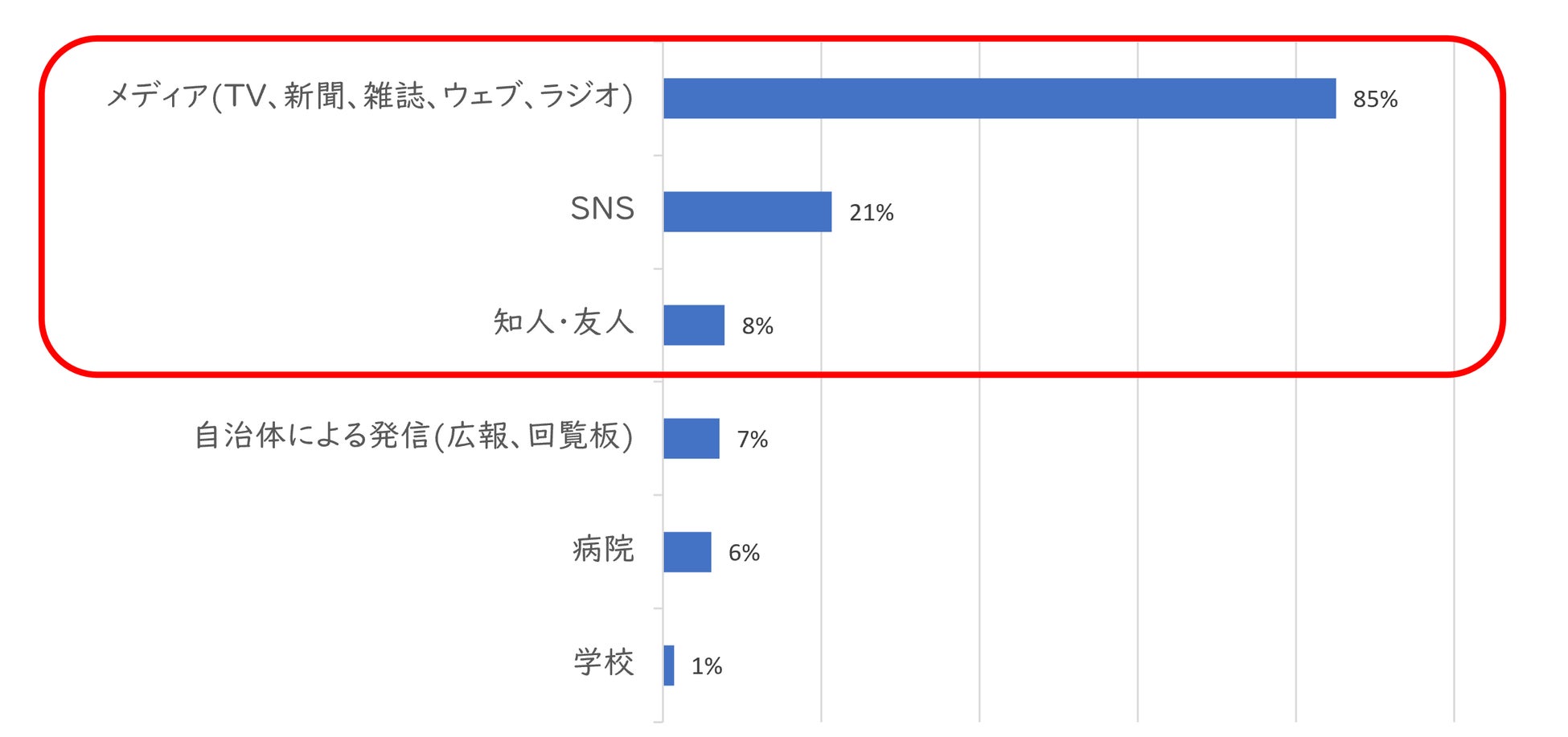 ・それぞれ認知の経緯は①メディア、②SNS、③知人・友人を通して