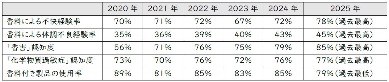 ■香害・化学物質過敏症に関する直近6年(2020年~2025年)の調査結果比較