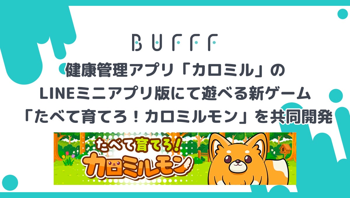 株式会社Bufff(本社:静岡県浜松市、代表取締役/CEO:成瀬 兼人)は、ライフログテクノロジー株式会社(東京都中央区、代表取締役:棚橋繁行)の提供する健康管理アプリ「カロミル」のLINEミニアプリ版にて遊べる新ゲーム「たべて育てろ!カロミルモン」を共同開発いたしました。