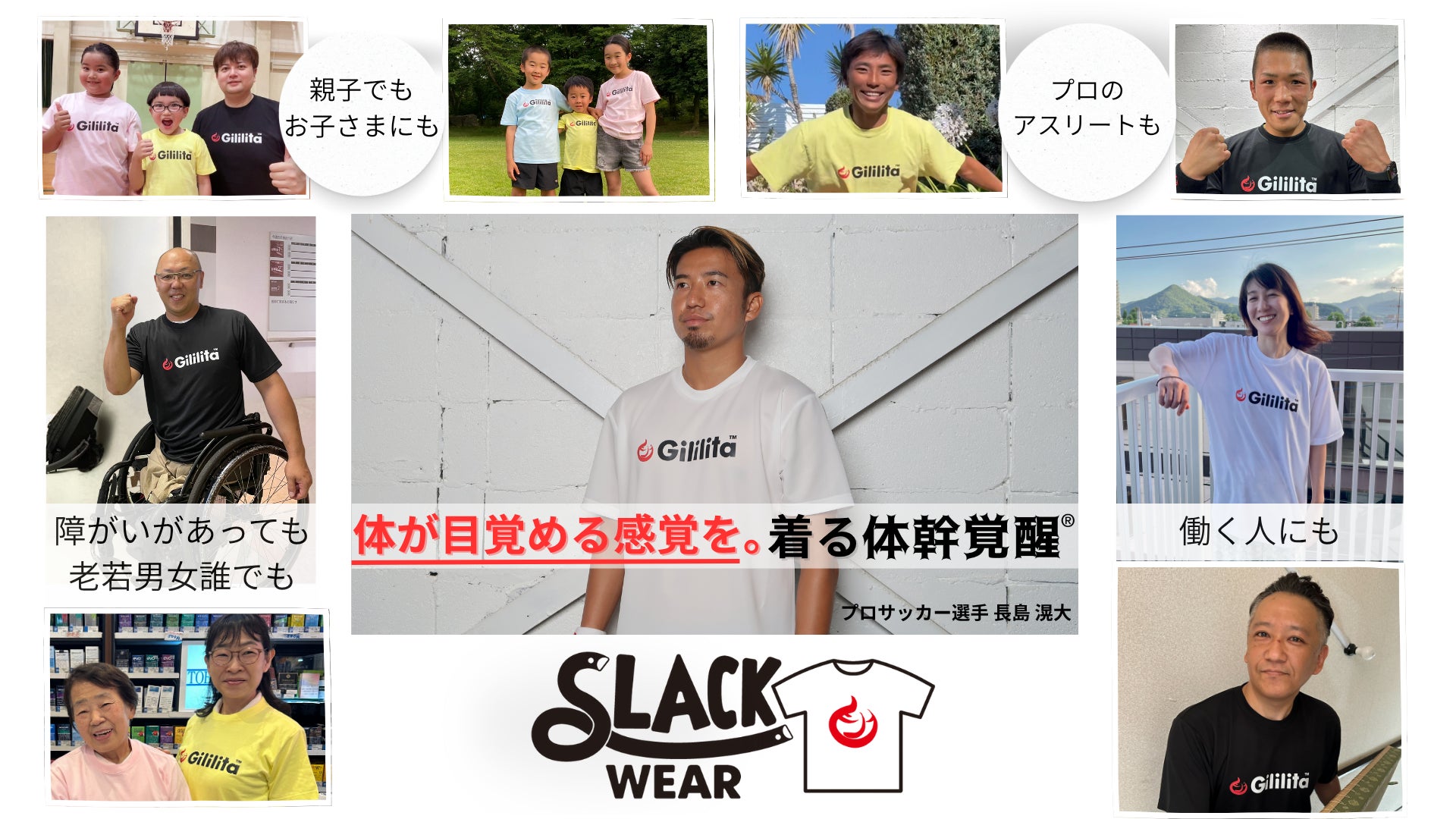 「スラックウェア」は、トップアスリートも日々のトレーニングに採用するほど信頼され、子どもたちから障がいのある方、そして老若男女問わず、すべての方々に「身体が目覚める感覚」と「より快適な身体の使い方」を提供します。