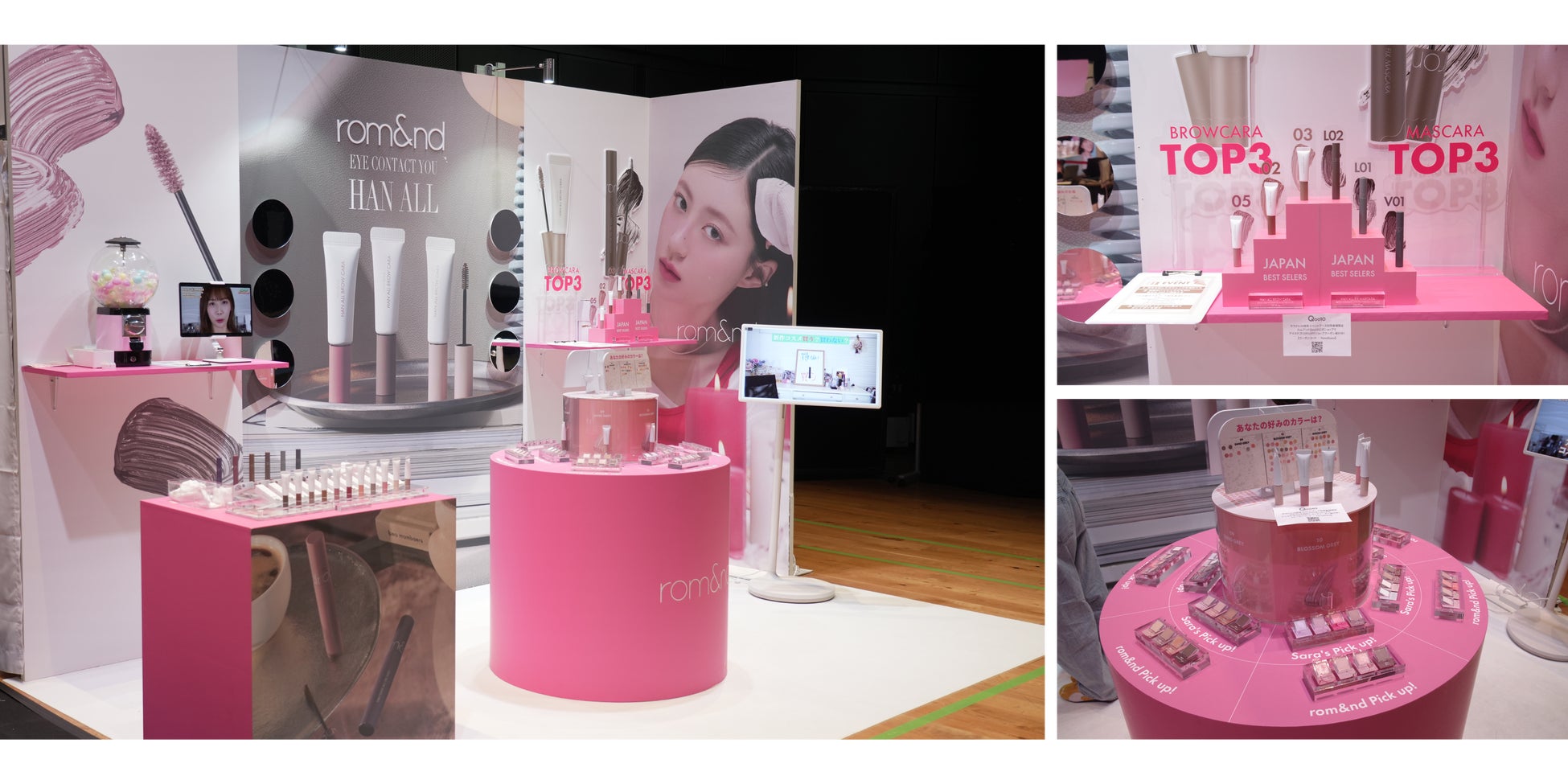 会場では、 ロムアンド(rom&nd)、粧美堂、セザンヌ、TFIT、LUNA、Abib、NAMING.の7ブランドが参加し、各ブランドが人気アイテムや新作をその場で試せる体験型ブースを展開しました。