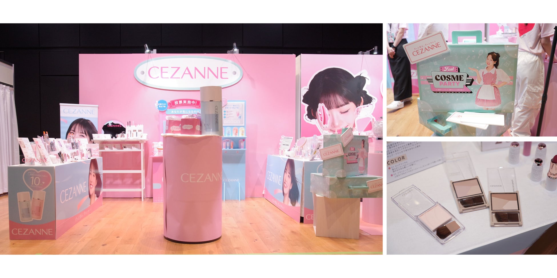 価格以上の品質で支持されるセザンヌは、オリジナルノベルティを配布。今秋発売予定『トーンフィルターハイライト』や3色入りのシェーディング『ブレンドカラーシェーディング』も先行体験できると話題に。