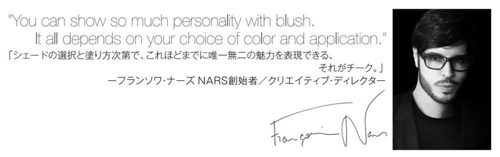 フランソワ・ナーズにとって、チークはフィーリング。その日の気分やムードに合わせて自由にメイクを楽しめる、こだわり抜いたラインナップ。NARSのアーティストリーを集約した珠玉のシェードが、あなただけがもつ唯一無二の魅力を彩ります。