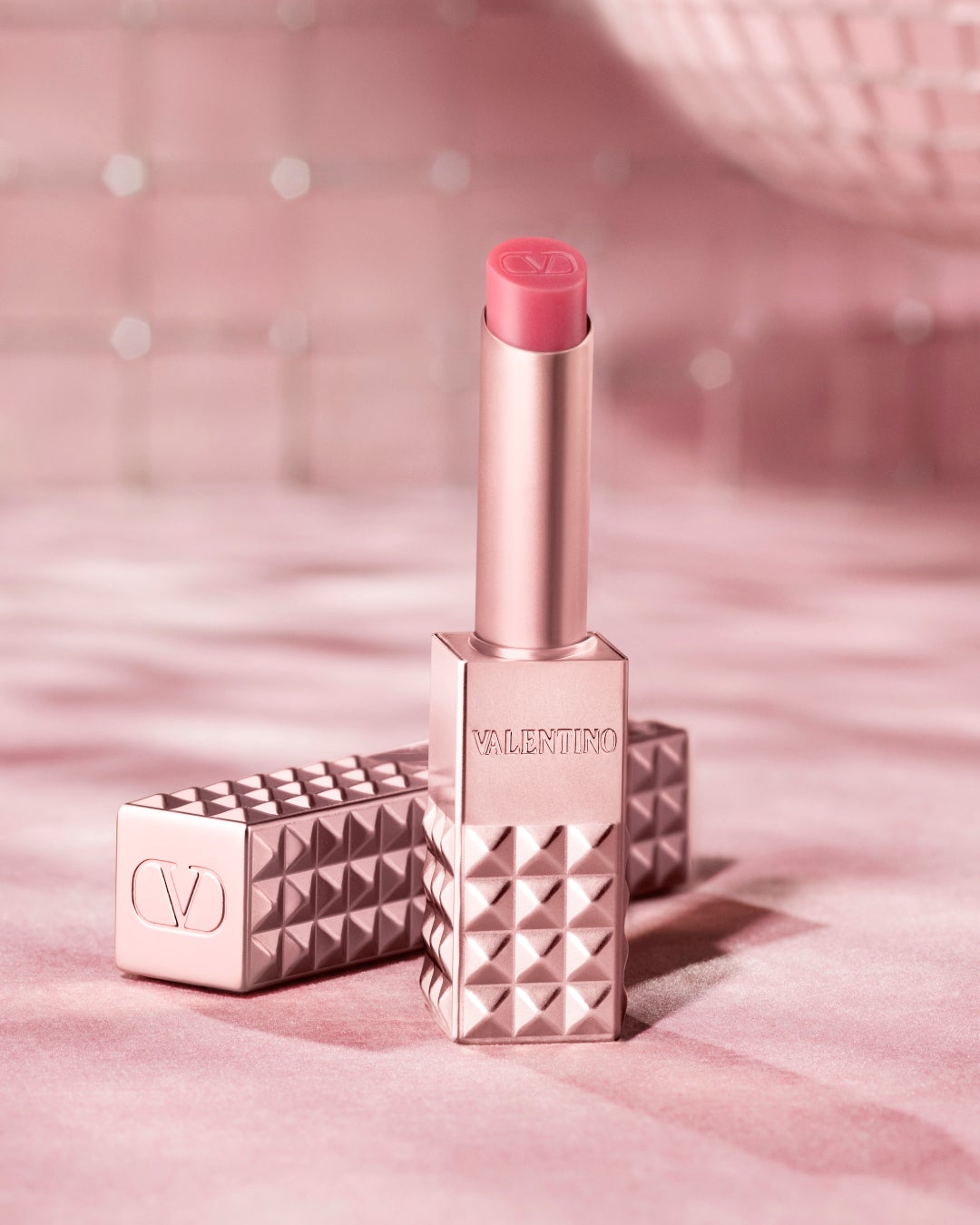 自然になじむカラー、潤いケア、滑らかな付け心地を叶えるリップバーム「スパイク ヴァレンティノ リップバーム」。輝くローズゴールドのスタッズを132個纏ったケースが印象的な、クチュールアクセサリーのようなビューティアイテムです。