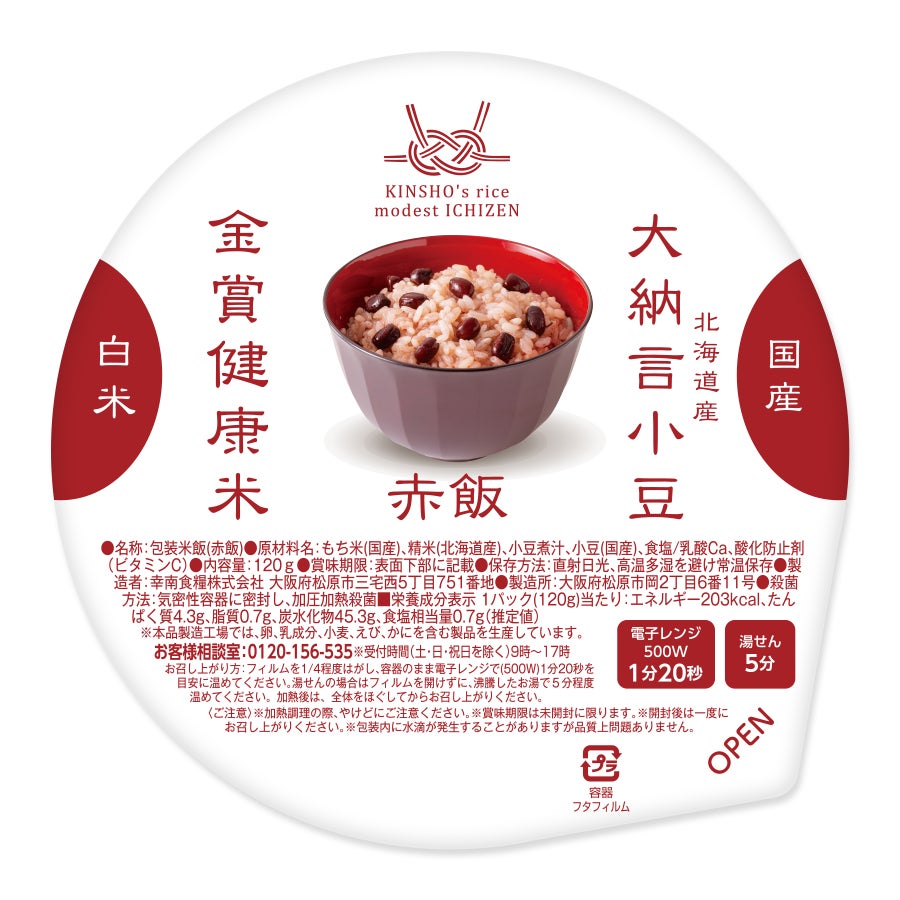 配合比:国産もち米57.1%、金賞健康米30.8%、北海道産大納言小豆12.1%