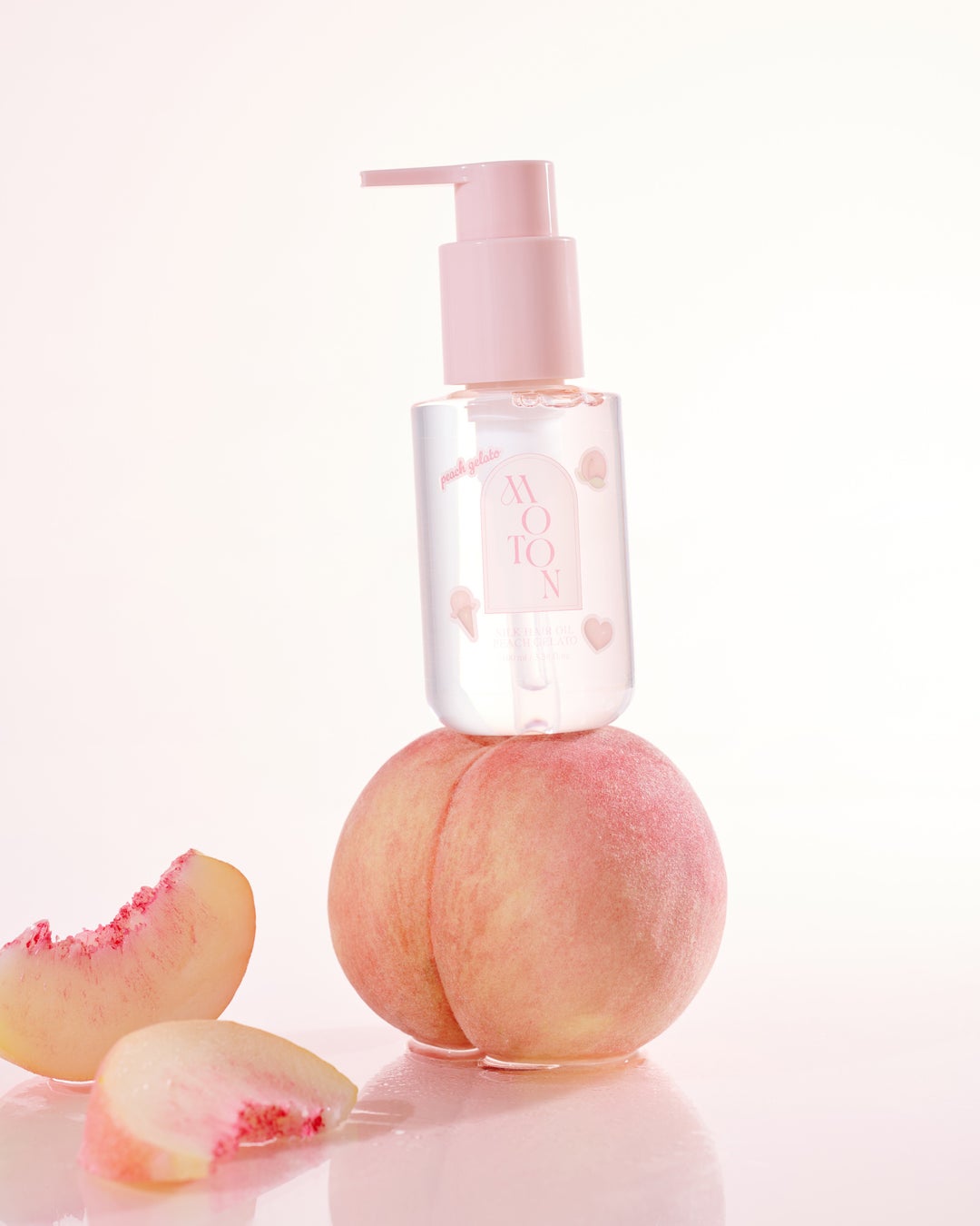 MOTONからヘア&ボディミストで大好評をいただいたピーチジェラートのシルクヘアオイルと昨年末に人気を博したボディソープがシリーズを増やして限定登場!