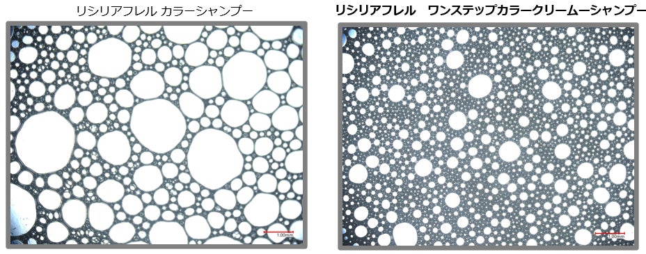 頭皮や髪の根元で直径約0.5mmの微細な泡が立ち、洗う・染める・ダメージ補修を高めます。