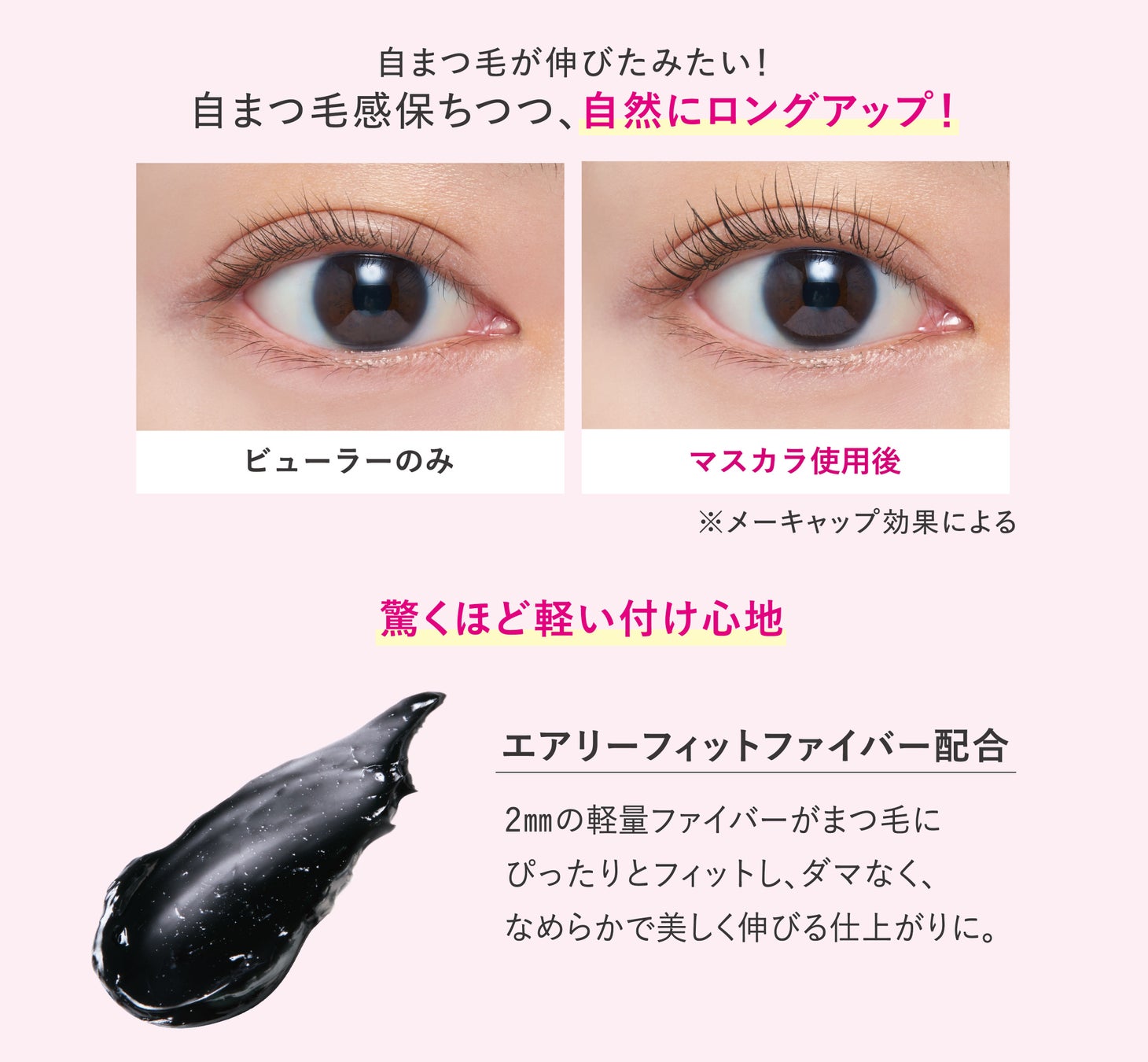 自まつ毛みたいなツヤ感と柔らかさ、驚くほど軽いのに、長時間*カールキープが叶うマスカラです。