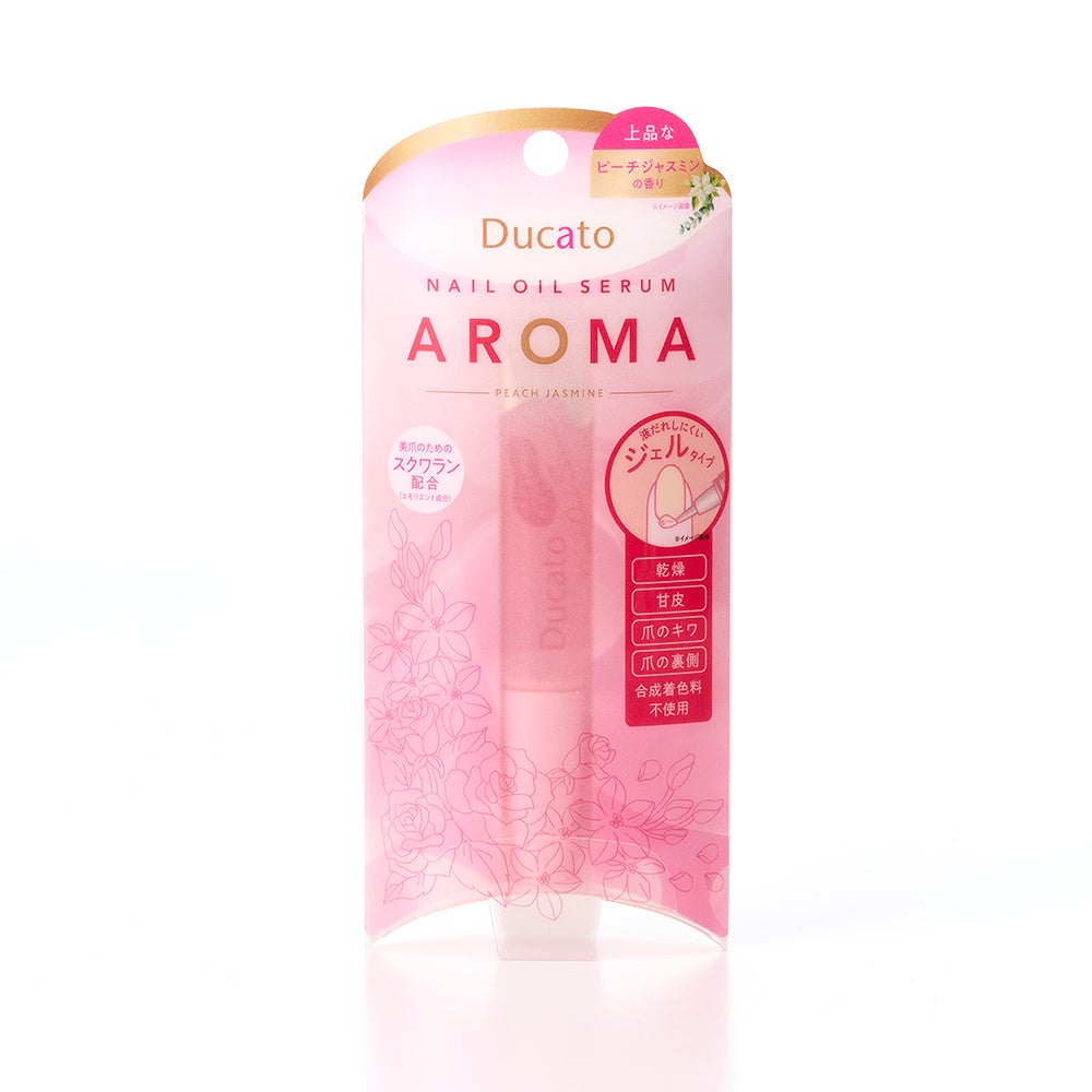同日に、ふわっと香る「ネイルオイルセラム アロマ ピーチジャスミン」も新発売いたします。