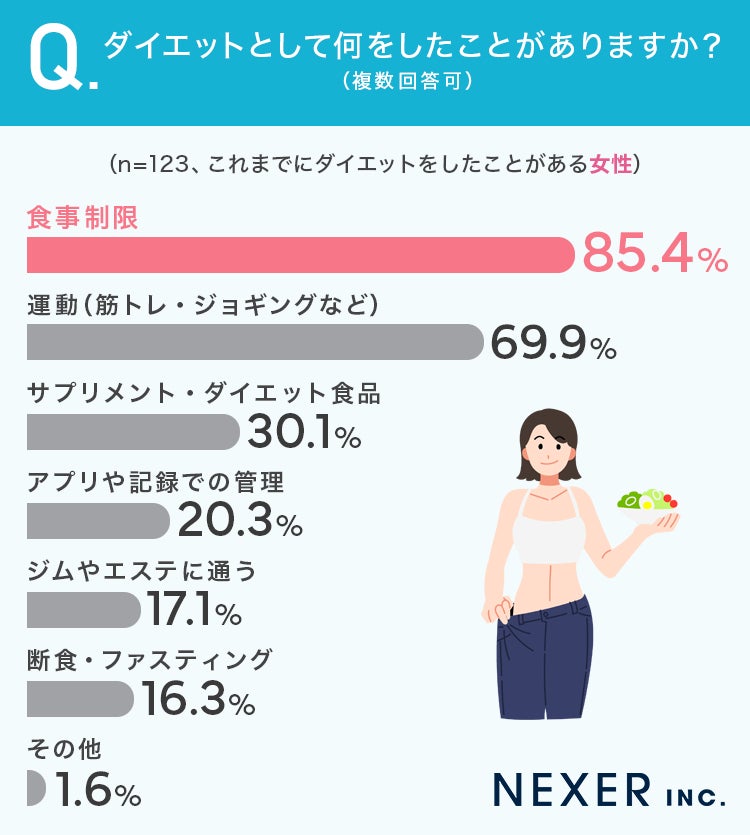 ■女性の85.4%・男性の74.3%が、ダイエットとして「食事制限」をしたと回答