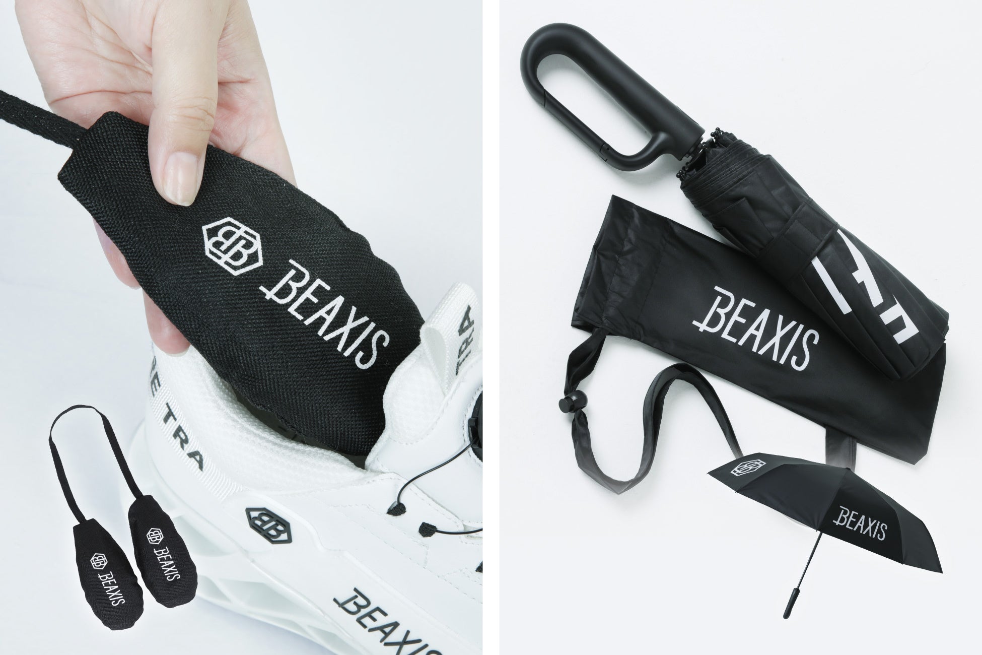 BEAXISのスニーカーシリーズをご購入の方に、消臭剤「シューズリフレッシュ」(写真左)をプレゼントいたします。