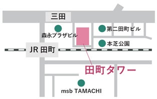 JR山手線・京浜東北線「田町」駅 徒歩2分、都営地下鉄三田線・浅草線「三田」駅 直結