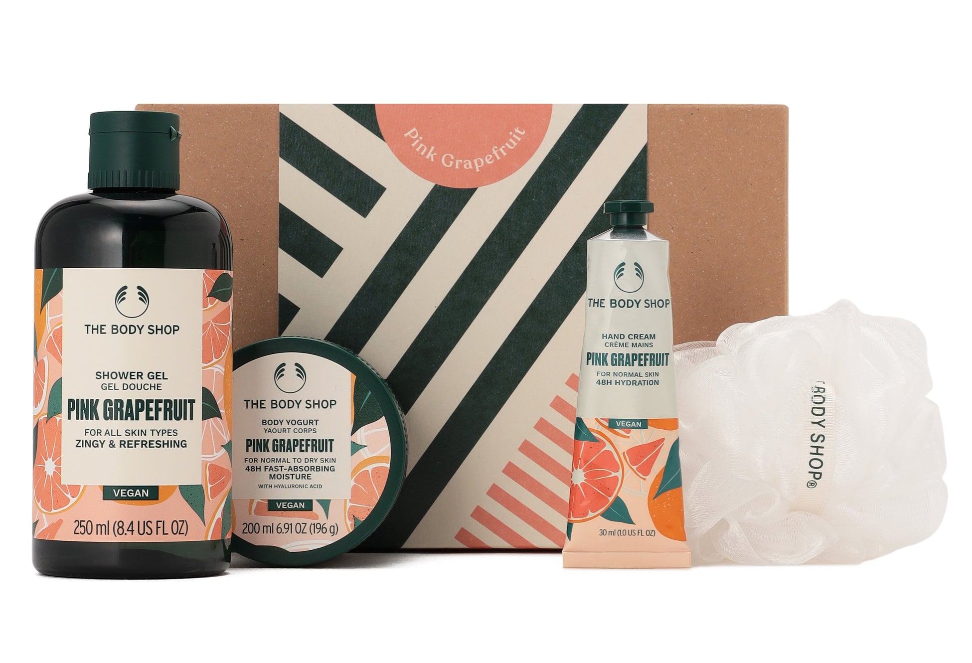 (香り:ピンクグレープフルーツ) 5,850円(税込) シャワージェル PG 250mL、ボディヨーグルト PG 200mL、ハンドクリーム PG 30mL、ミニウルトラファインバスリリー