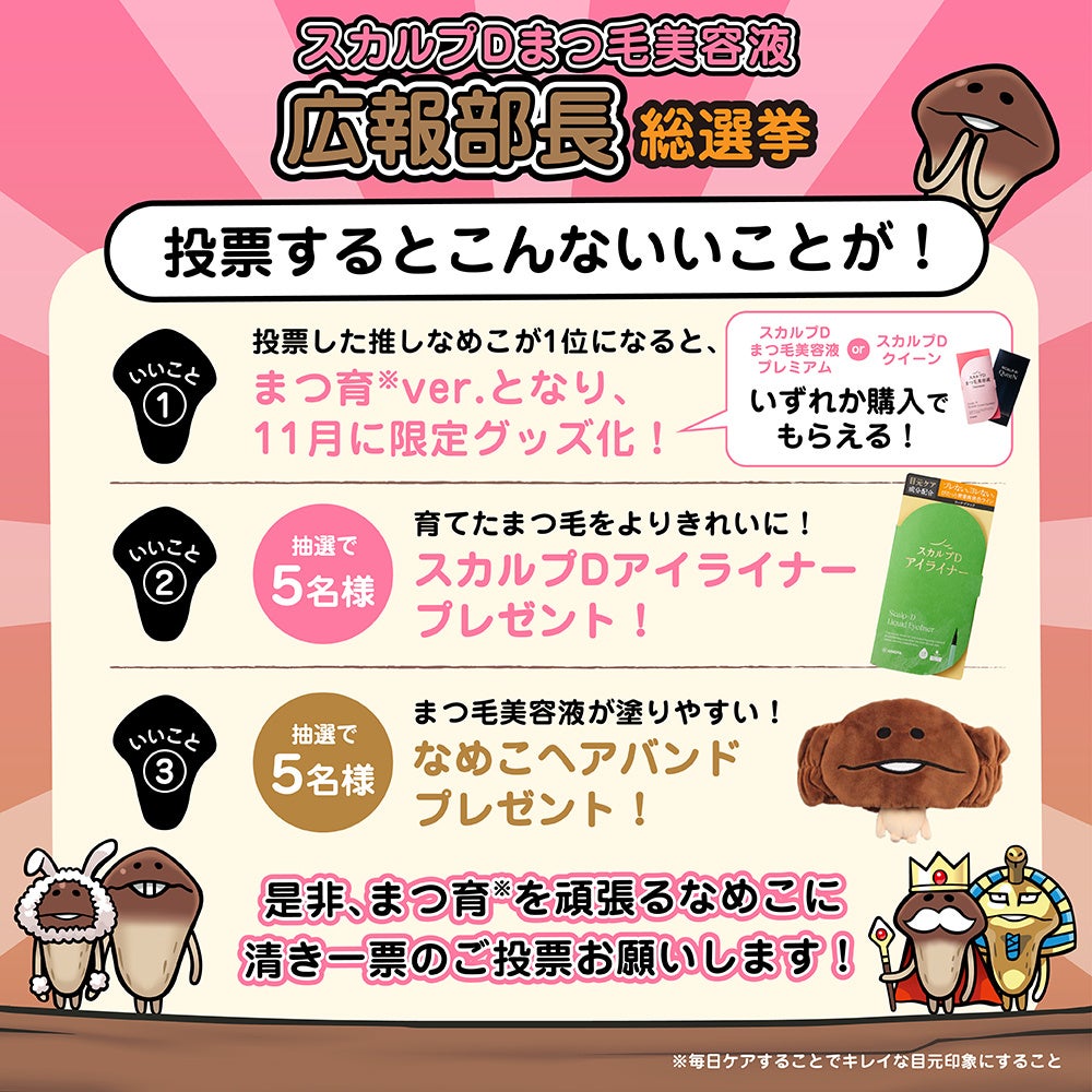 ■「スカルプDまつ毛美容液」×「なめこ」 広報部長総選挙 概要