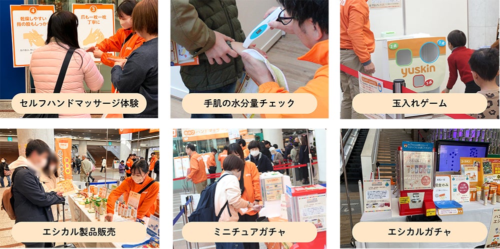 ●効果的なハンドケアが学べるセルフハンドマッサージ体験 ●手肌の水分量チェック ●エシカル製品販売 ●エシカルガチャ ●ミニチュアガチャ ●玉入れゲーム |