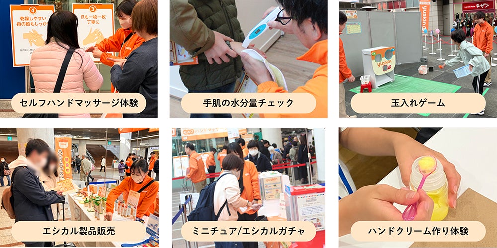 今年は昨年に引き続き、製造拠点のある富山でイベントを開催いたします。会場では、セルフハンドマッサージ体験や手肌の水分量チェックといったハンドケア体験をはじめ、ハンドクリーム作り体験や玉入れゲーム、会場限定のミニチュアガチャなど、ユースキン製薬オリジナルコンテンツを用意しています。楽しみながらハンドケアの大切さを体感していただける内容になっていますので、是非ご来場ください。