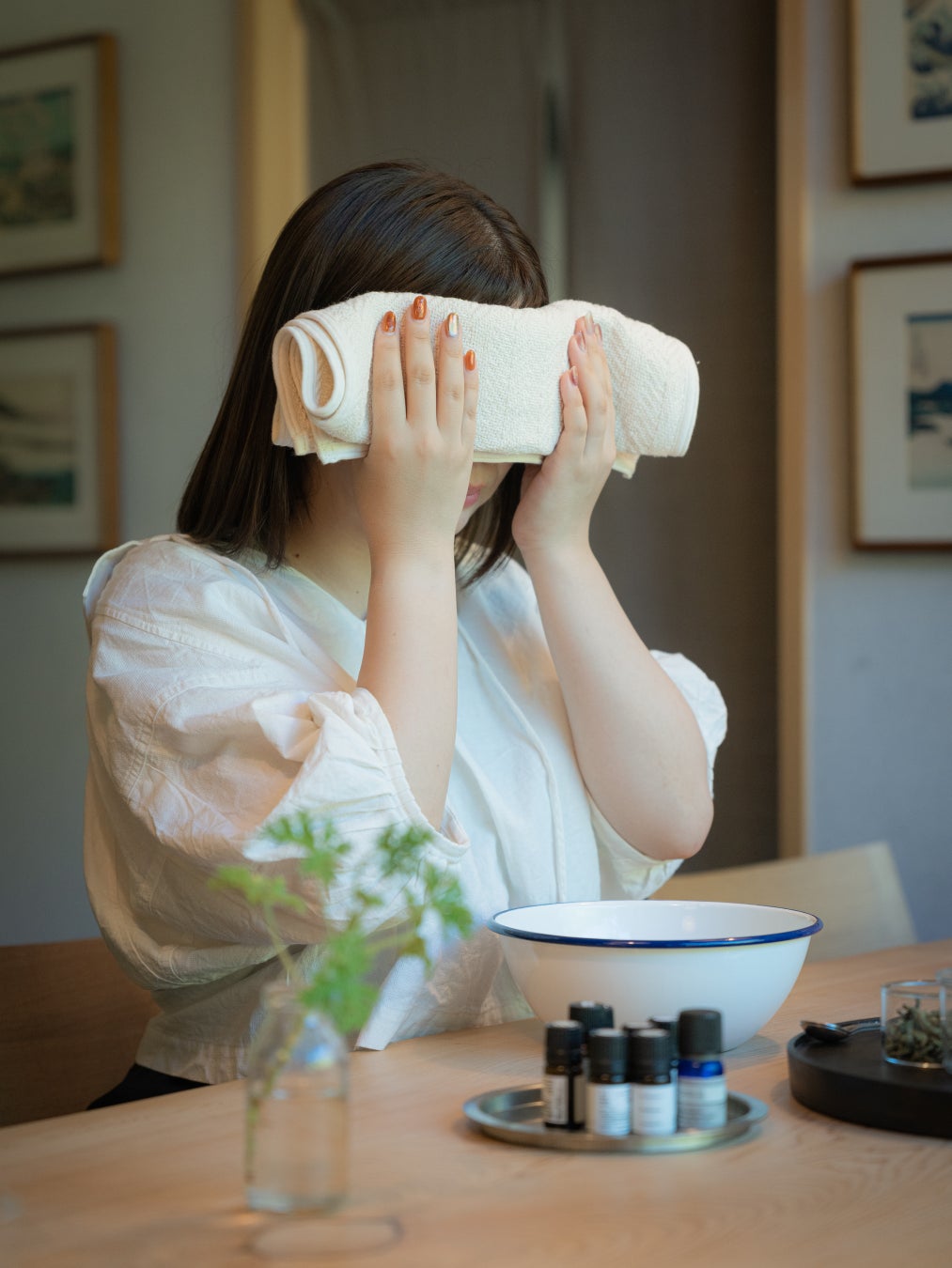 五感を働かせながら“からだが喜ぶ”オリジナルのハーブティーをブレンド。アロマオイルを使った簡単なセルフケアも取り入れ、植物の香りに包まれながら心身をやさしく整えていきます。