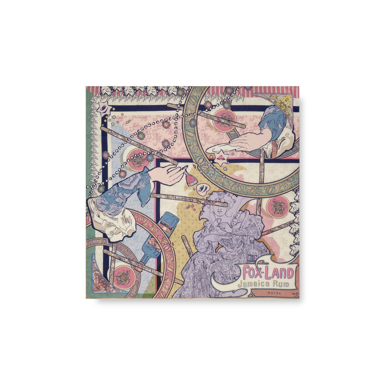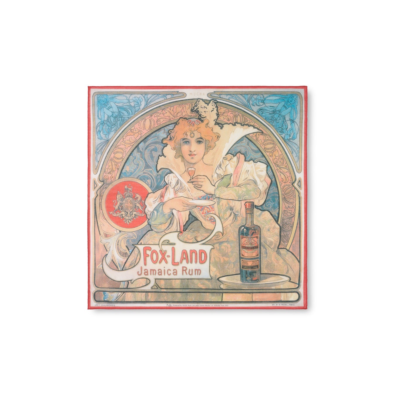 重厚感あふれるミュシャの作品『フォックスランド・ジャマイカ・ラム』のアートを大胆に分解・再構築した、遊び心あふれるハンカチが新登場。ストライプやドットを取り入れたポップ でカラフルなデザインに、対称性をあえて崩した無秩序な構図で、原画とのギャップを楽しめる一枚に仕上げました。薄手の大判コットン素材を使用しており、バッグに結んだり、バンダナのようにアクセサリー感覚で取り入れるのもおすすめです。
