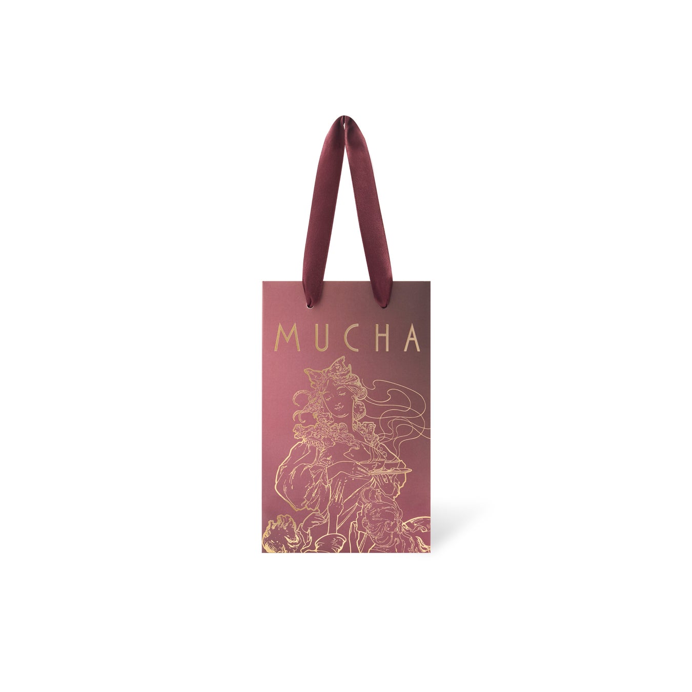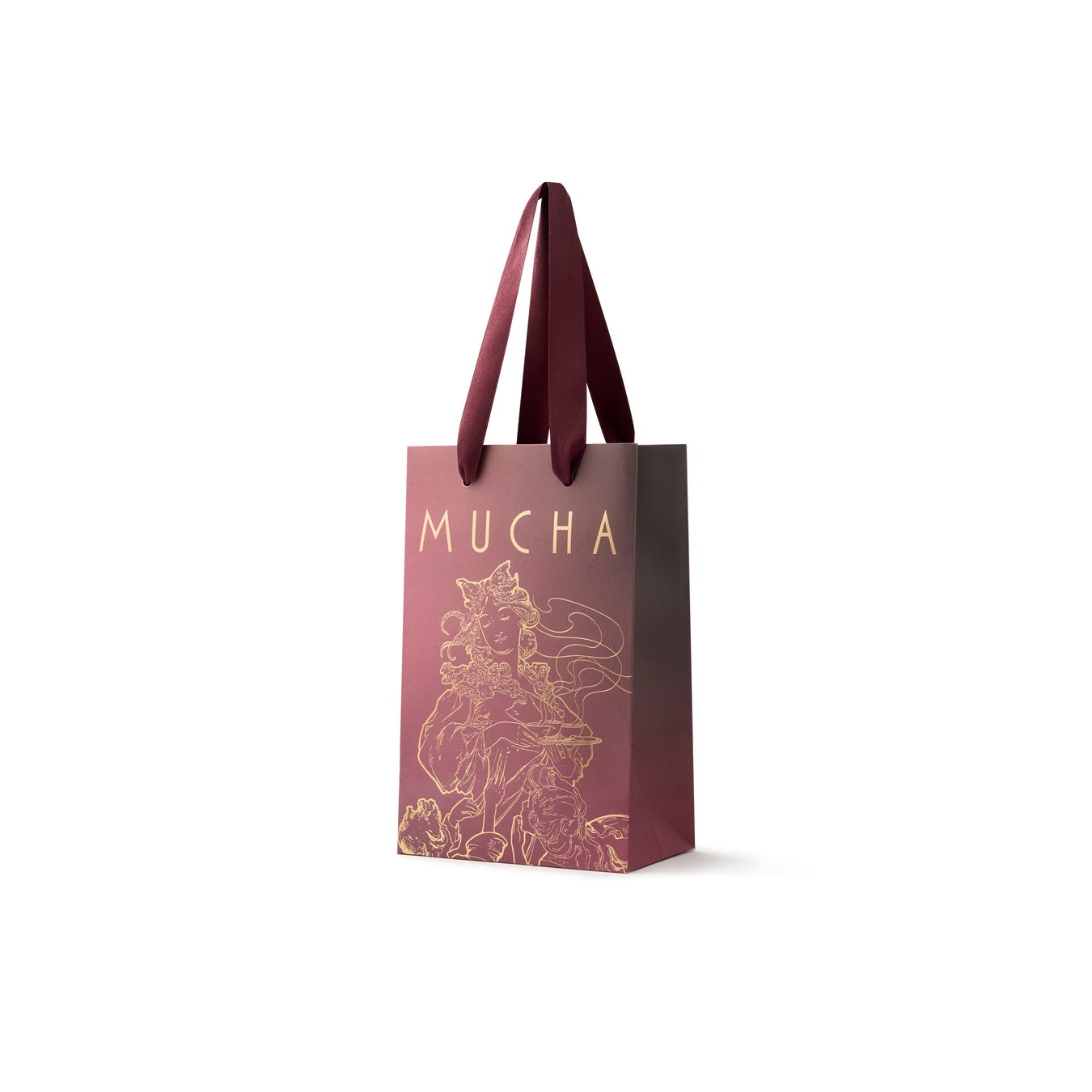 ミュシャのアートを贅沢なゴールドの箔で施した、ホリデーシーズン限定のスペシャルショッピングバッグ。10月16日(木)よりMUCHA直営店にて商品をご購入いただいたお客様に、先着でこちらに入れてお渡しいたします。