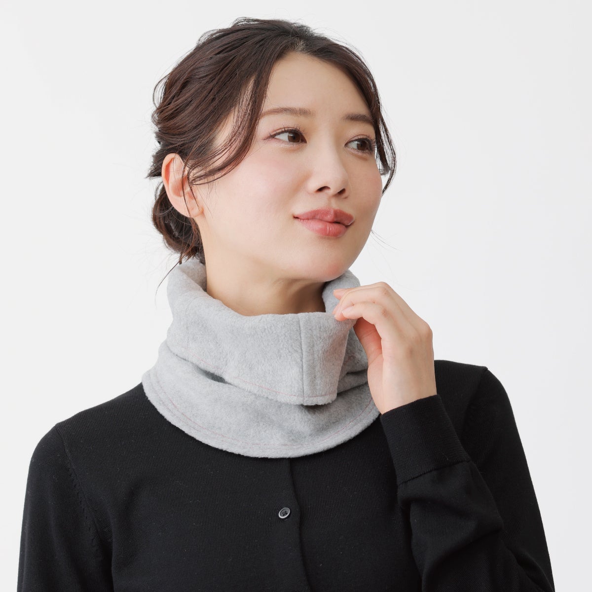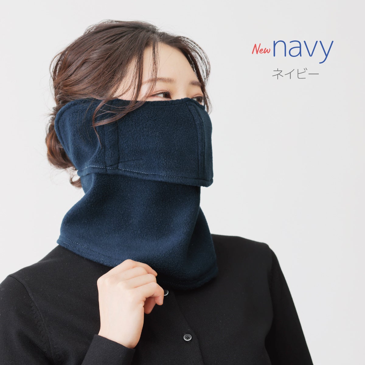 耳紐を取り外すことでネックウォーマーとしても使用でき、寒い季節に冷えやすい首元もしっかりと温かく守ります。