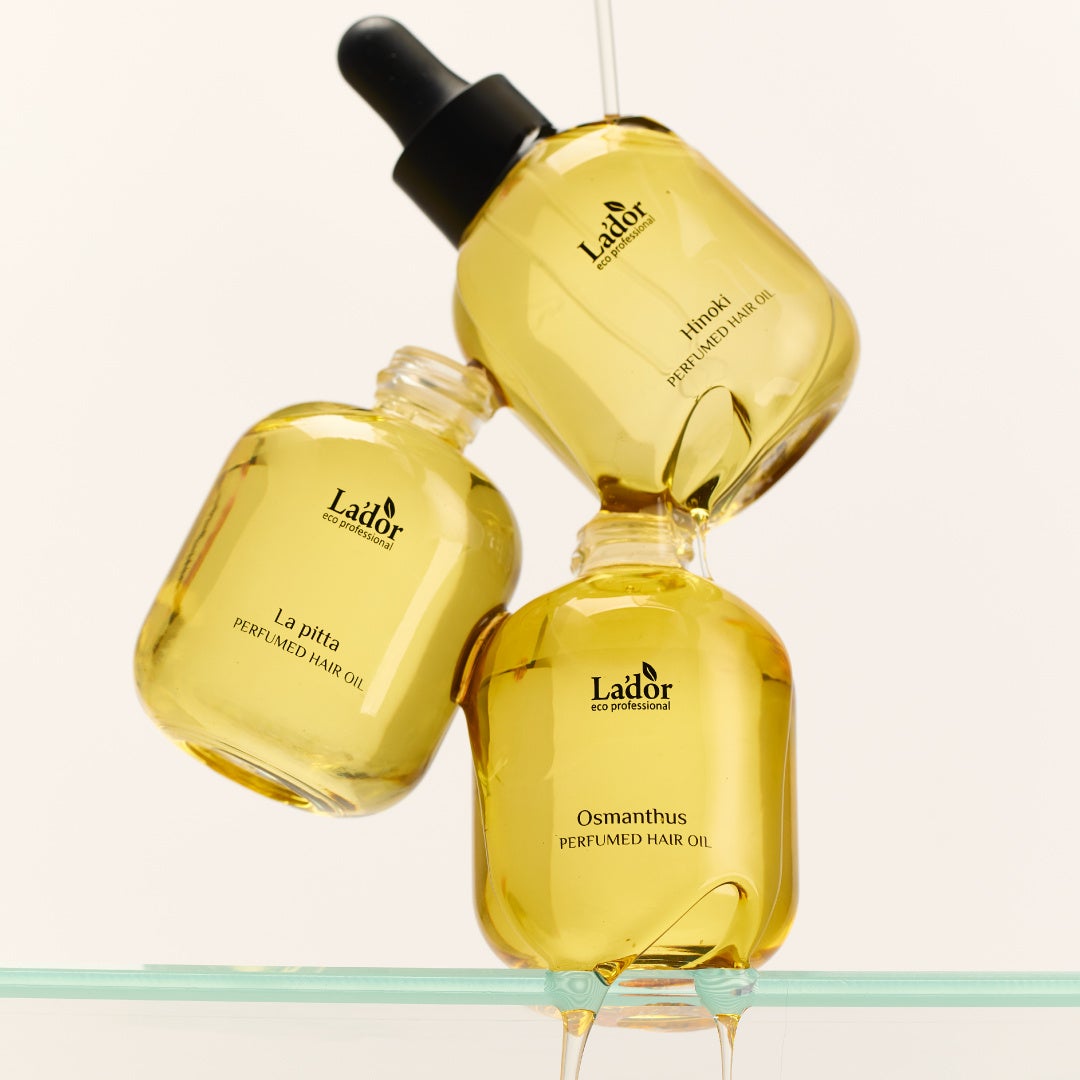 LADORのパフュームヘアオイルを代表する「ラピタ」「ヒノキ」に加え、美容誌ベストコスメを3冠受賞した「アワーリーフ」の3点セット。気分やシーンに合わせて香りを選べます。 -