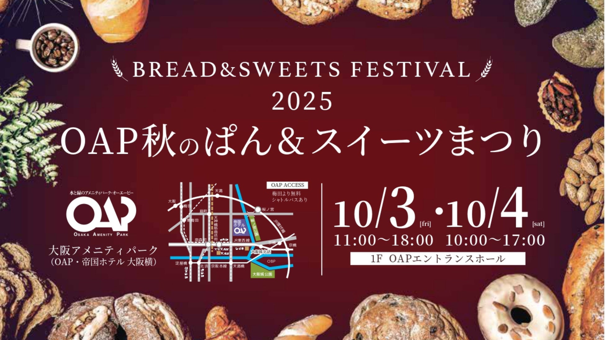 10/3(金)・4(土)の2日間、大阪アメニティパークで開催される「OAP秋のぱん&スイーツまつり」にて、ポップアップストアを出店いたします。