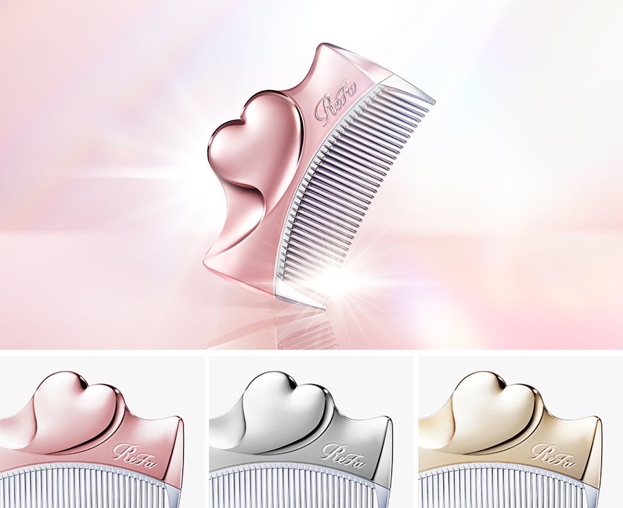 なめらかな曲線と厚みのあるハートのデザインが、しっかりと手にフィットしながら、心ときめく輝きを放ちます。 取り出しやすく、使いやすい、 髪のお守りになるコンパクトコームです。