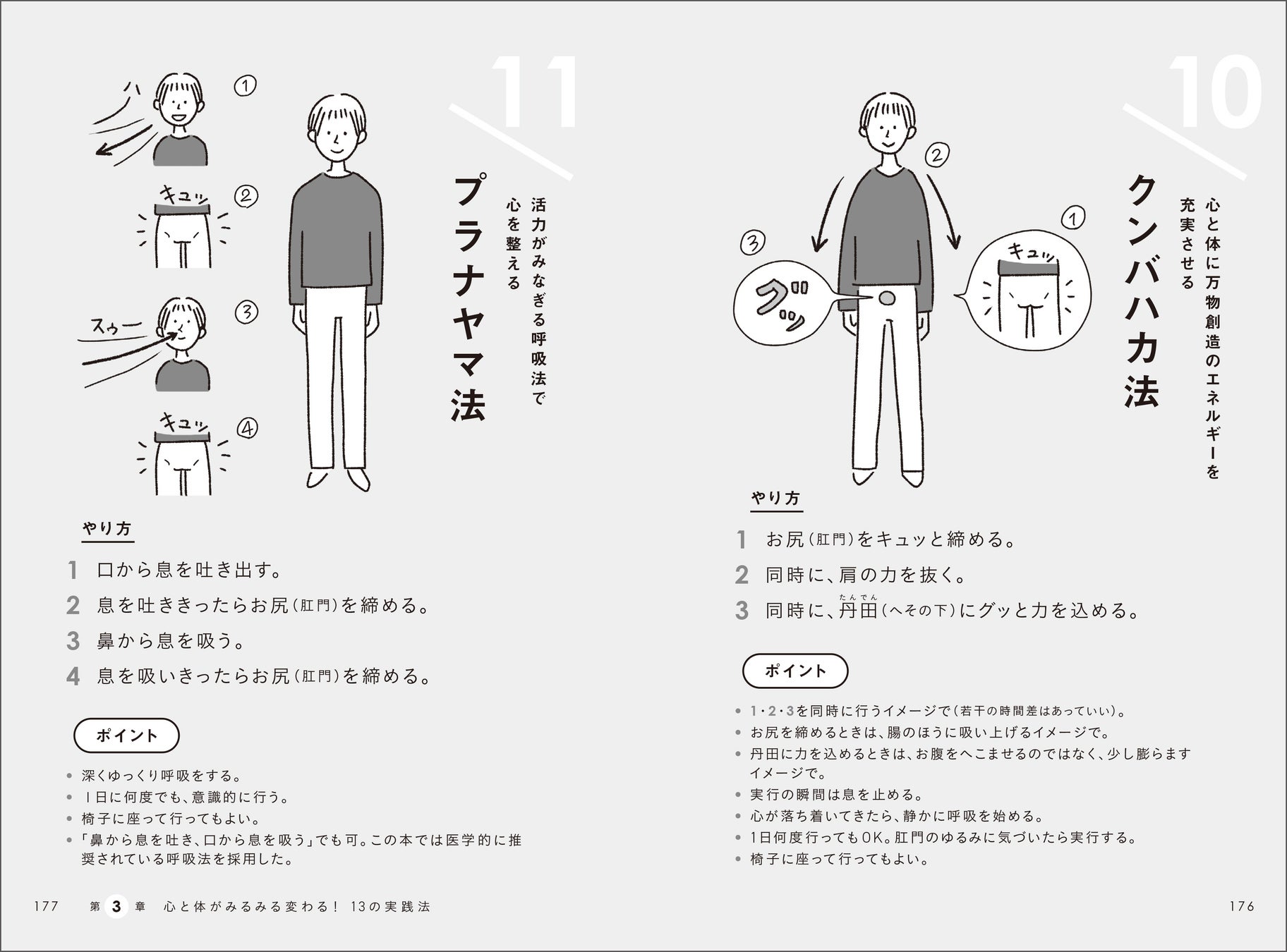 中村天風の教えは「心身統一法」という名の実践法として体系化されているのも大きな特徴。本書では、「鏡に映る自分に命令する暗示法」や「行動前の心の状態チェック法」といった実践メソッドもイラスト入りで掲載しています。心を積極的にするために欠かせない「心の倉庫の大掃除」を毎日の習慣にすれば、心はピカピカに磨かれて、変化を実感することができます。