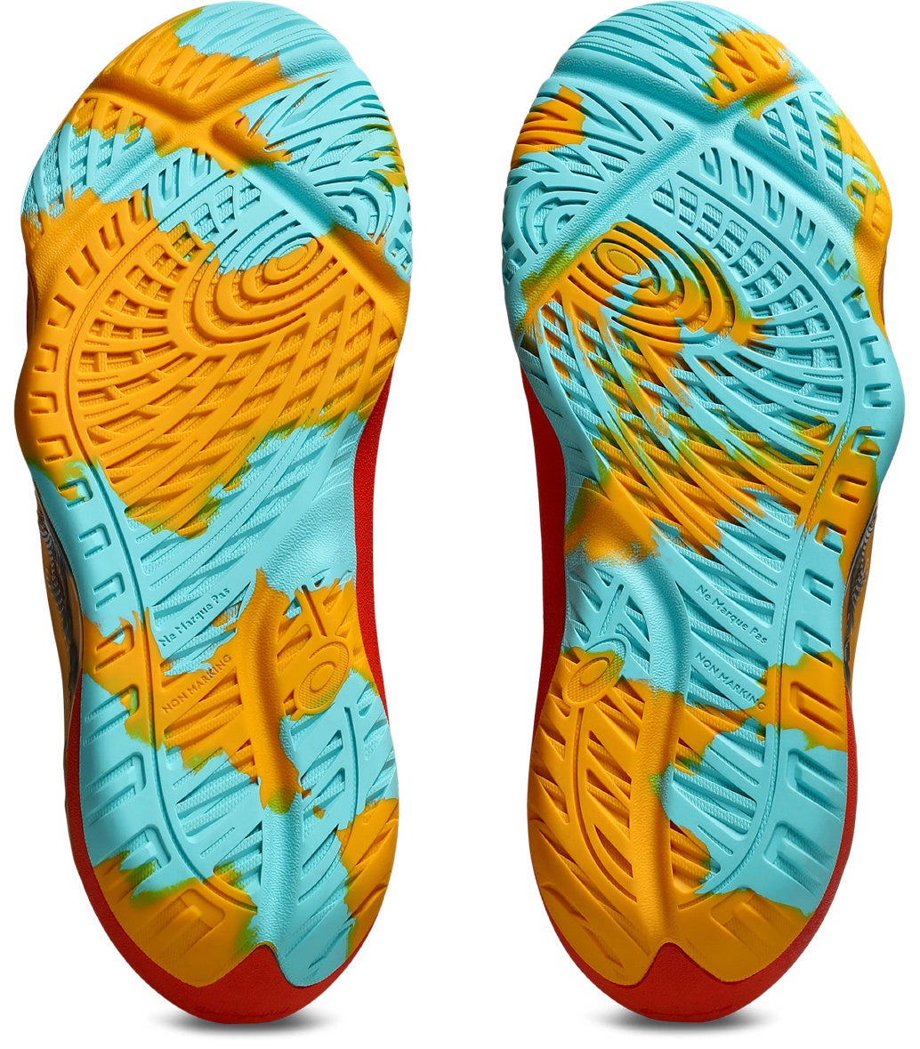 靴底は、体重がかかりやすい外側方向に大きくせり出した構造を採用し、安定性を高めています。また、前部にX字型の屈曲溝を設け、さまざまな方向への蹴り出しをサポートします。激しい動きの中で左右の切り返しや突破力が求められるプレーヤーにおすすめです。