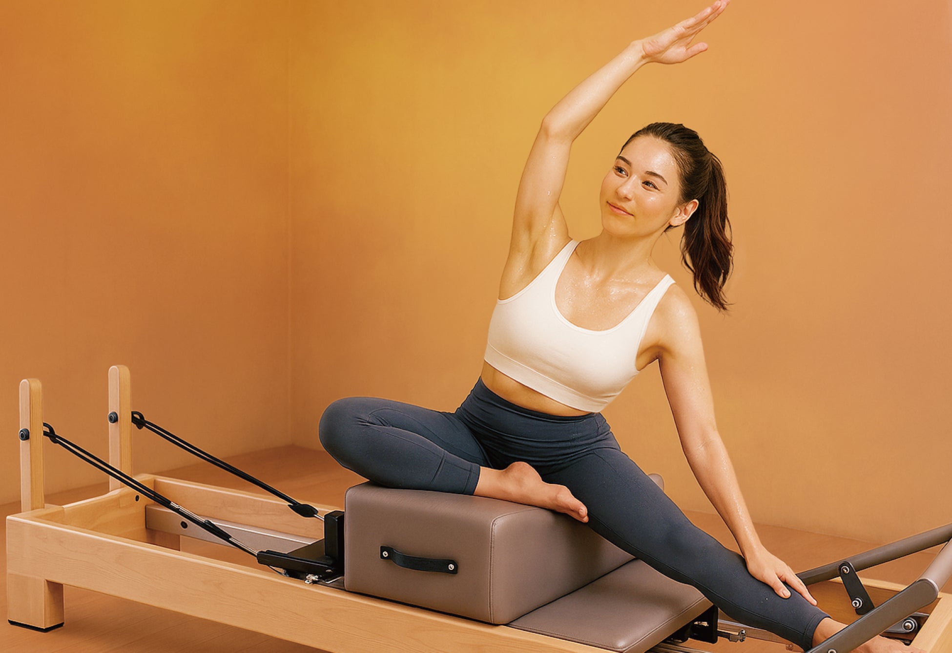 ホット環境に特化した本プログラムは、通常のマシンピラティスとは異なり、段階的な構成で深層筋にアプローチ。呼吸と骨盤調整から始まり、代謝を高める動きで発汗を促し、全身が温まった状態でカラダを引き締めます。最後はストレッチで心身を整え、マインドフルネスな状態へ導く設計。柔軟性向上や姿勢改善効果に加え、リラックス効果も期待できます。