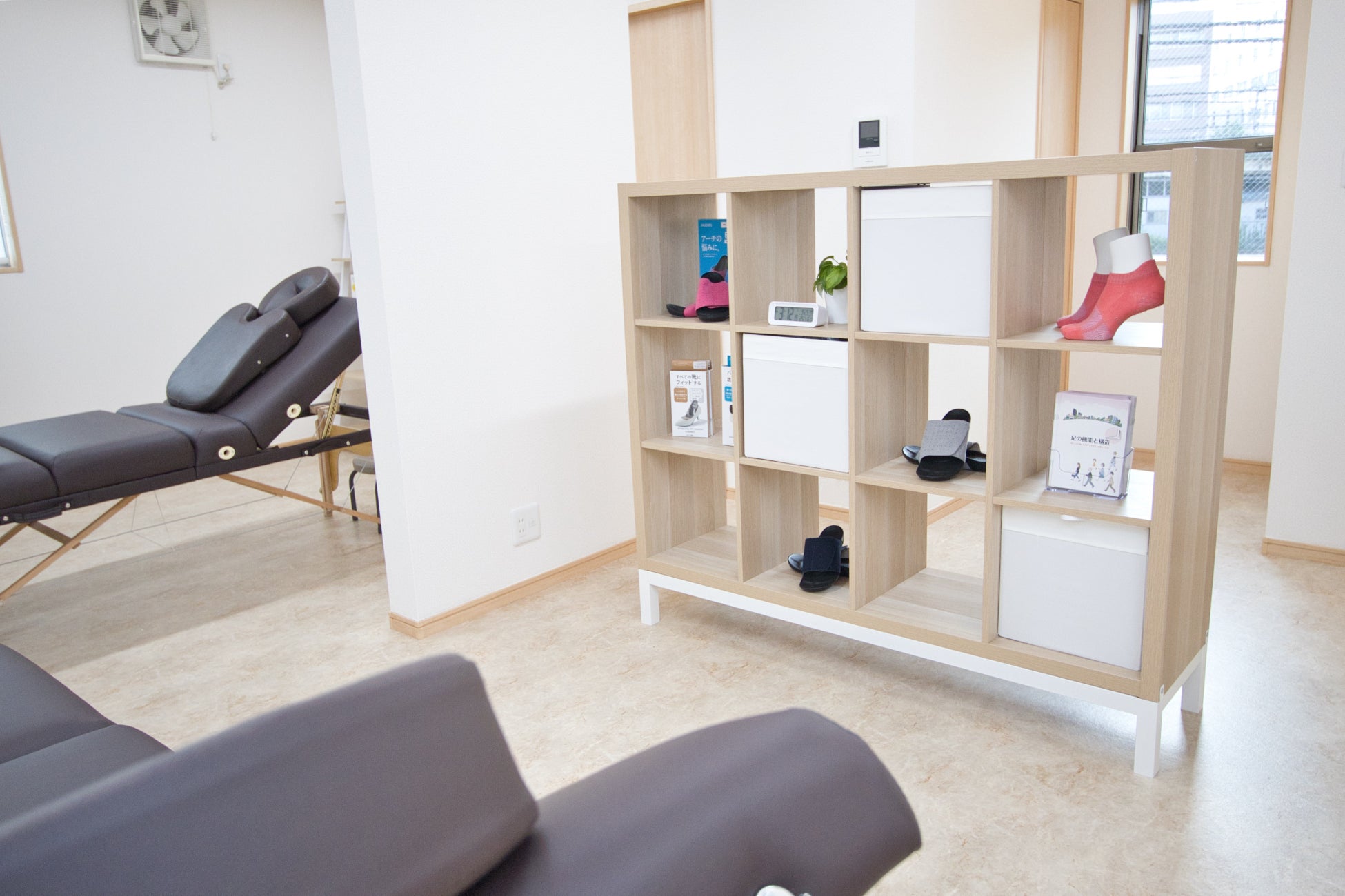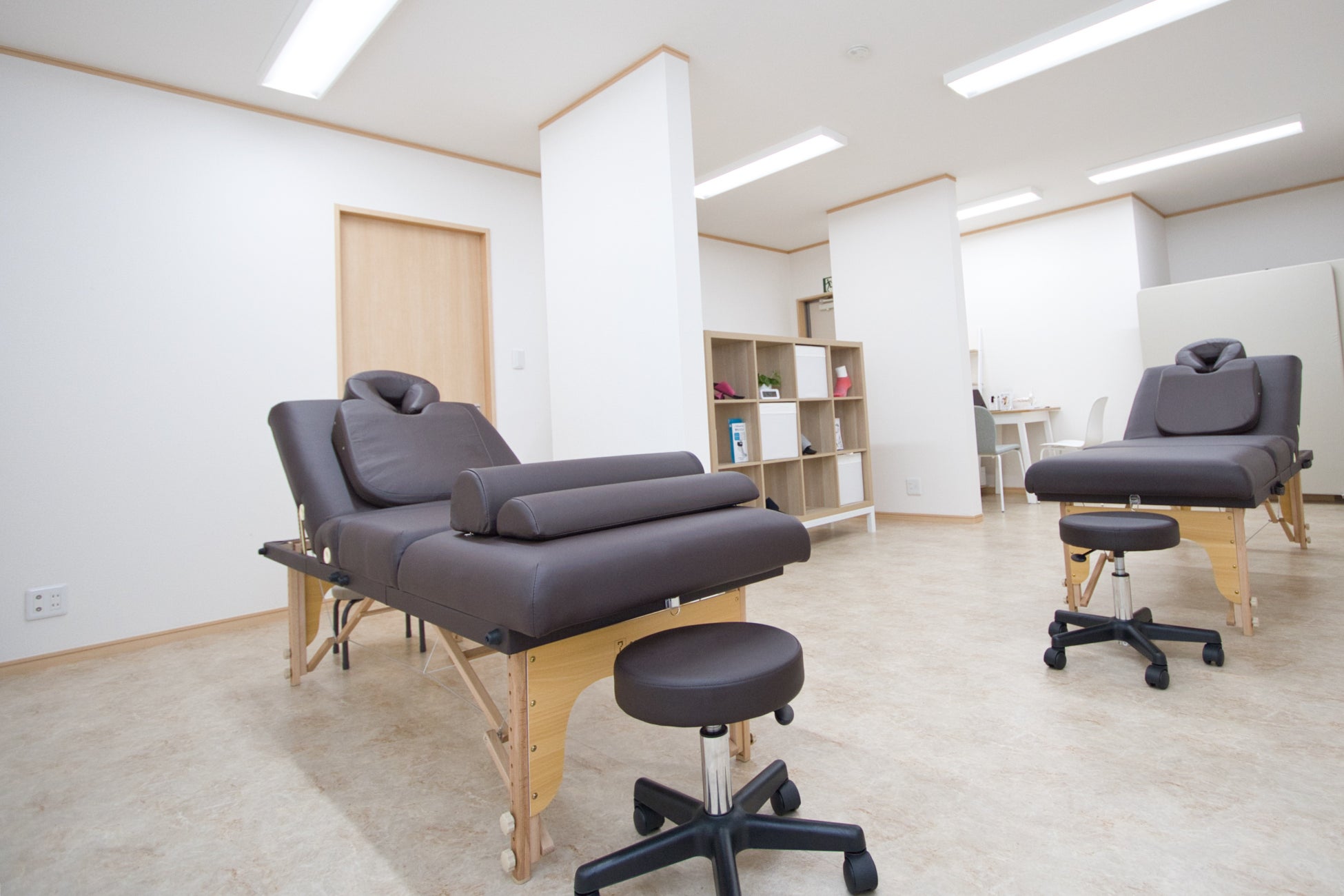 駅近ながら喧騒から少し離れた落ち着いた立地にあり、白を基調とした明るい空間でリラックスしながら施術を受けられます。