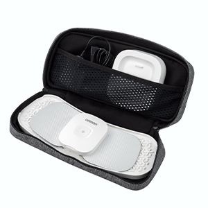 専用のスマートフォンアプリ(無料)を用いて、好みに応じたモードや強さを手元で操作することが可能なコードレスタイプの低周波治療器です。本体とパッドをつなぐコードがないので移動中や仕事中でも「ながら」治療が可能です。また持ち運びやすさを考えてデザインされたコンパクトサイズの専用収納ケースで、本体と充電器や充電ケーブルをあわせて持ち運べます。外出先、遠征先で好きなタイミングでセルフケアを行えます。
