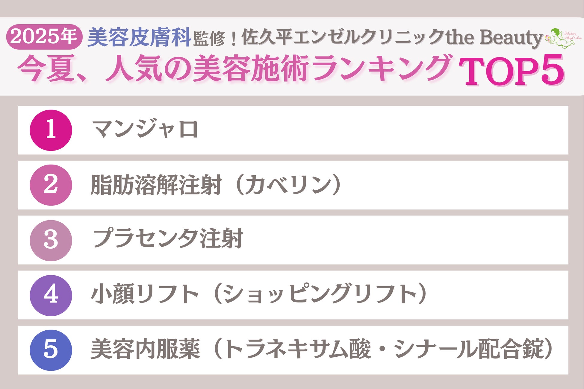 【2025年】美容皮膚科監修!今夏、人気の美容施術ランキングTOP5!「佐久平エンゼルクリニックthe Beauty」調査