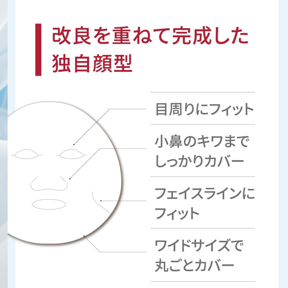 超密着シートを使用した、フェイスマスクの顔型も、自社開発のオリジナル型。