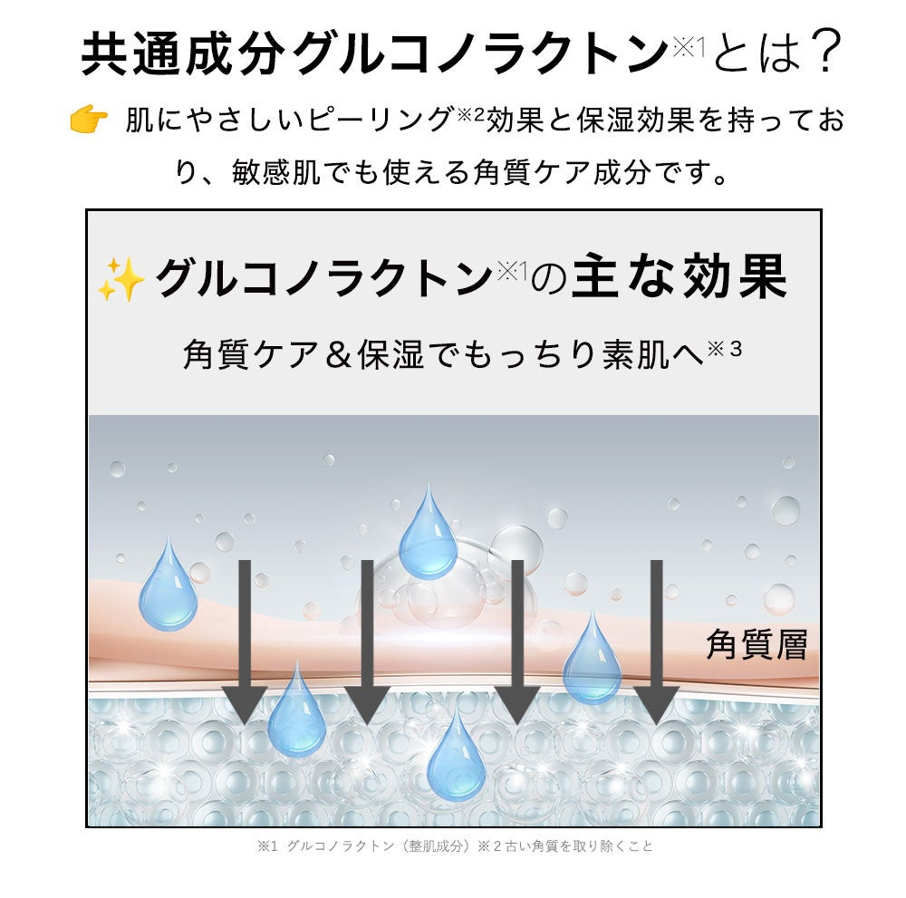 角質を柔らかくつるスベにする『グルコノラクトン *1』配合