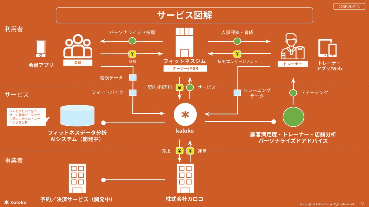 さらに分析の結果「入会から6か月以内に退会した人の85%は体組成に変化がない」というデータも明らかになりました。つまり退会要因の本質は「効果が実感できないこと」であり、その当たり前を追求する仕組みとして、kalokoはジム経営に不可欠なインフラを目指します。