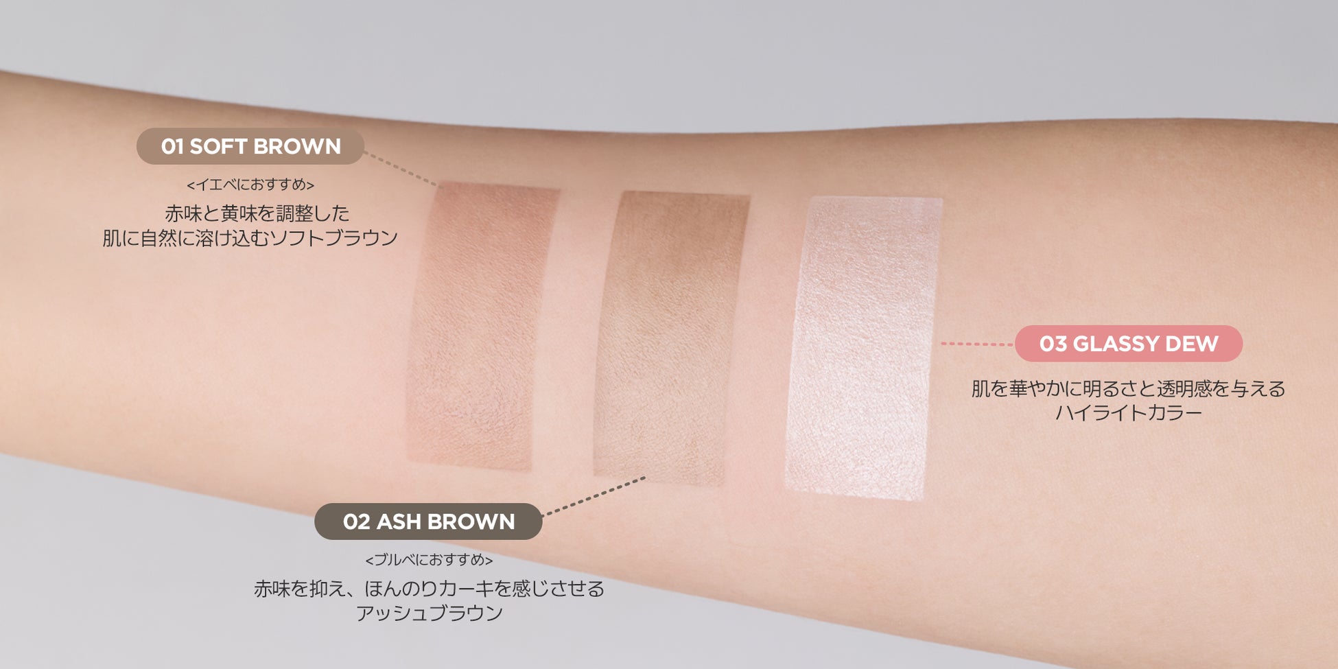 ■カラー:01 Soft Brown / 02 Ash Brown / 03 Glassy Dew