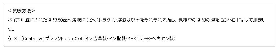 結果1 悪臭成分の酸にプレラクトンを添加すると各酸の量が減少することを発見