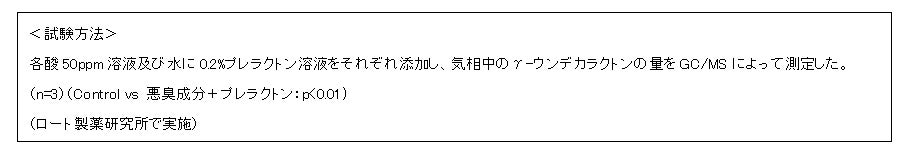 結果2 悪臭成分の酸にプレラクトンを添加するとラクトンが発生することを確認