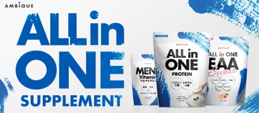 「オールインワン」を基軸にプロテインをはじめEAA、マルチビタミンなどボディメイクサプリを展開しております。