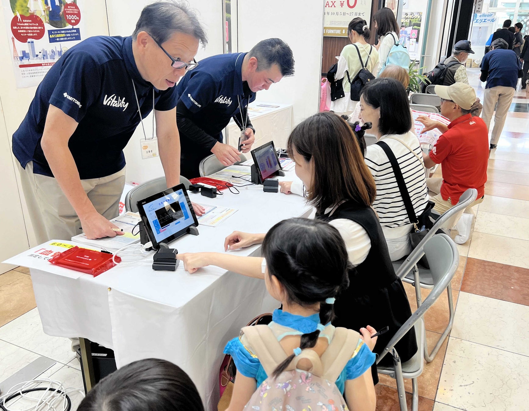健康に関連した事業紹介や製品のサンプル配布、健康に関する情報などをお伝えするほか、血管年齢の測定や手の洗い残しチェック、フレイルチェックコーナーもあります。