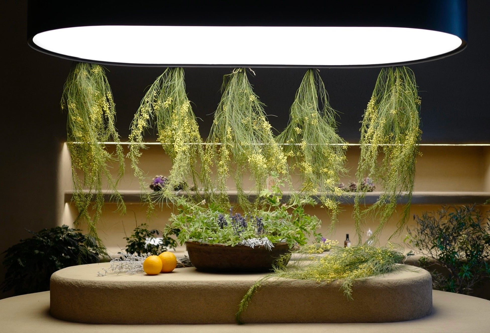 この空間は、天然香料の楽しさを体感し、その感動を共有する場として設計されています。